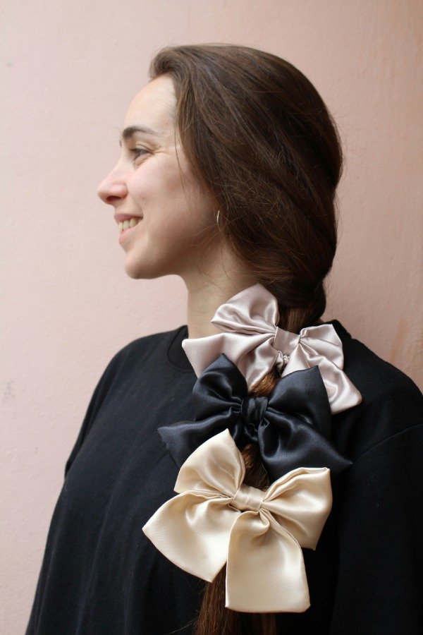 Moño lazo con hebilla francesa en raso. El tamaño de la hebilla es mediana.