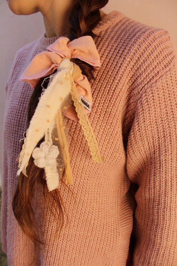 Armadas en tusor,con tiritas de distintas tela como detalle y una pequeña 🌸 tejida a mano, estás scrunchies son súper delicadas, acompañan tus looks casuales, boho, románticos! La idea es que luzca caída como vez en la foto, anímate a jugar con tu pelo, ideal para final de trenza desarmada! 💕
