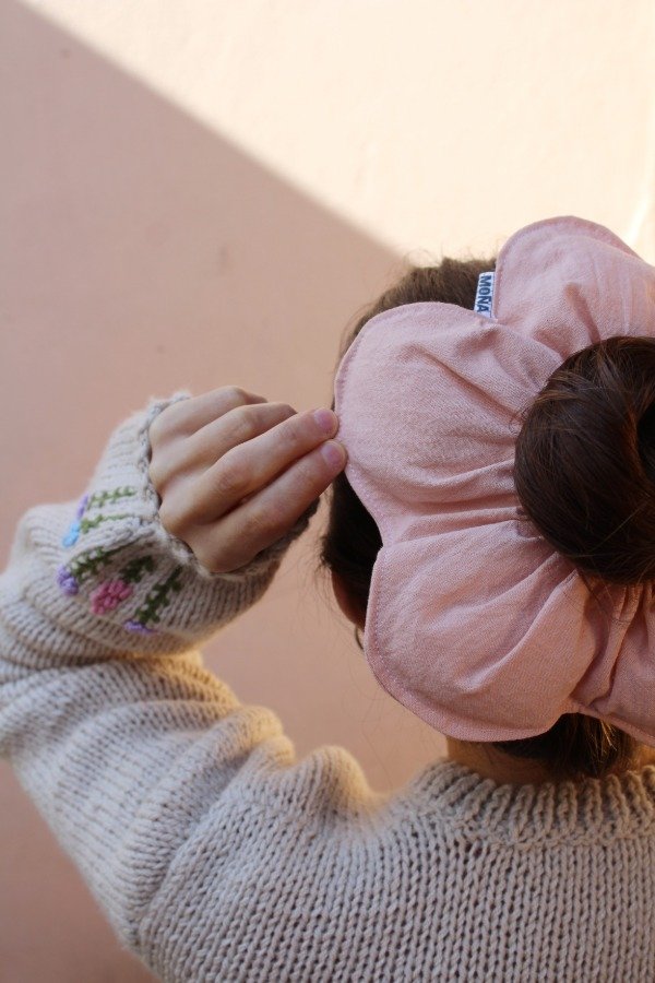 Está scrunchie es un 🔥! Te armas primero un rodete por ejemplo y luego la colocas sobre,para que luzca bien la 🌸! Está armada en tusor y es puff!